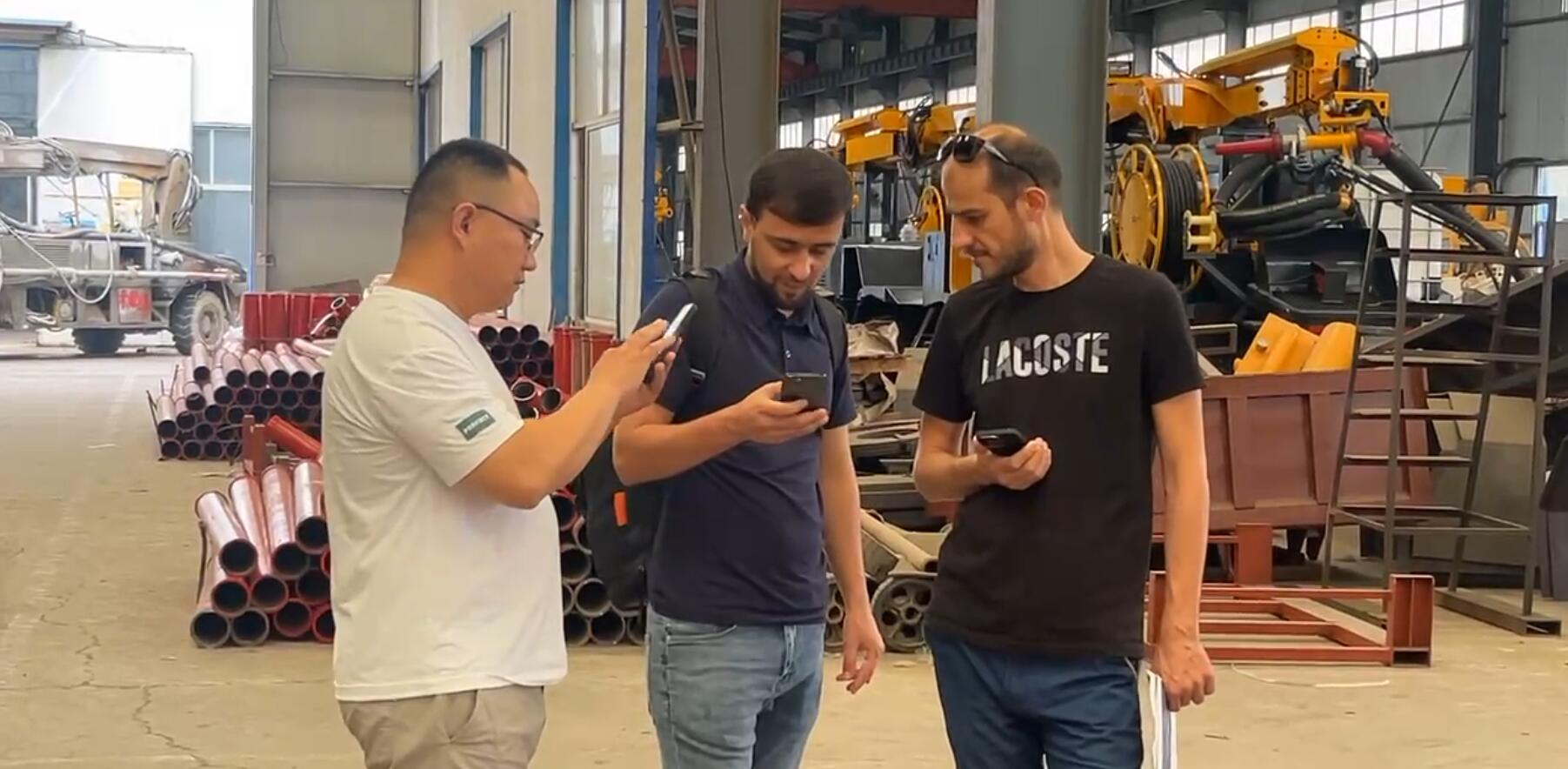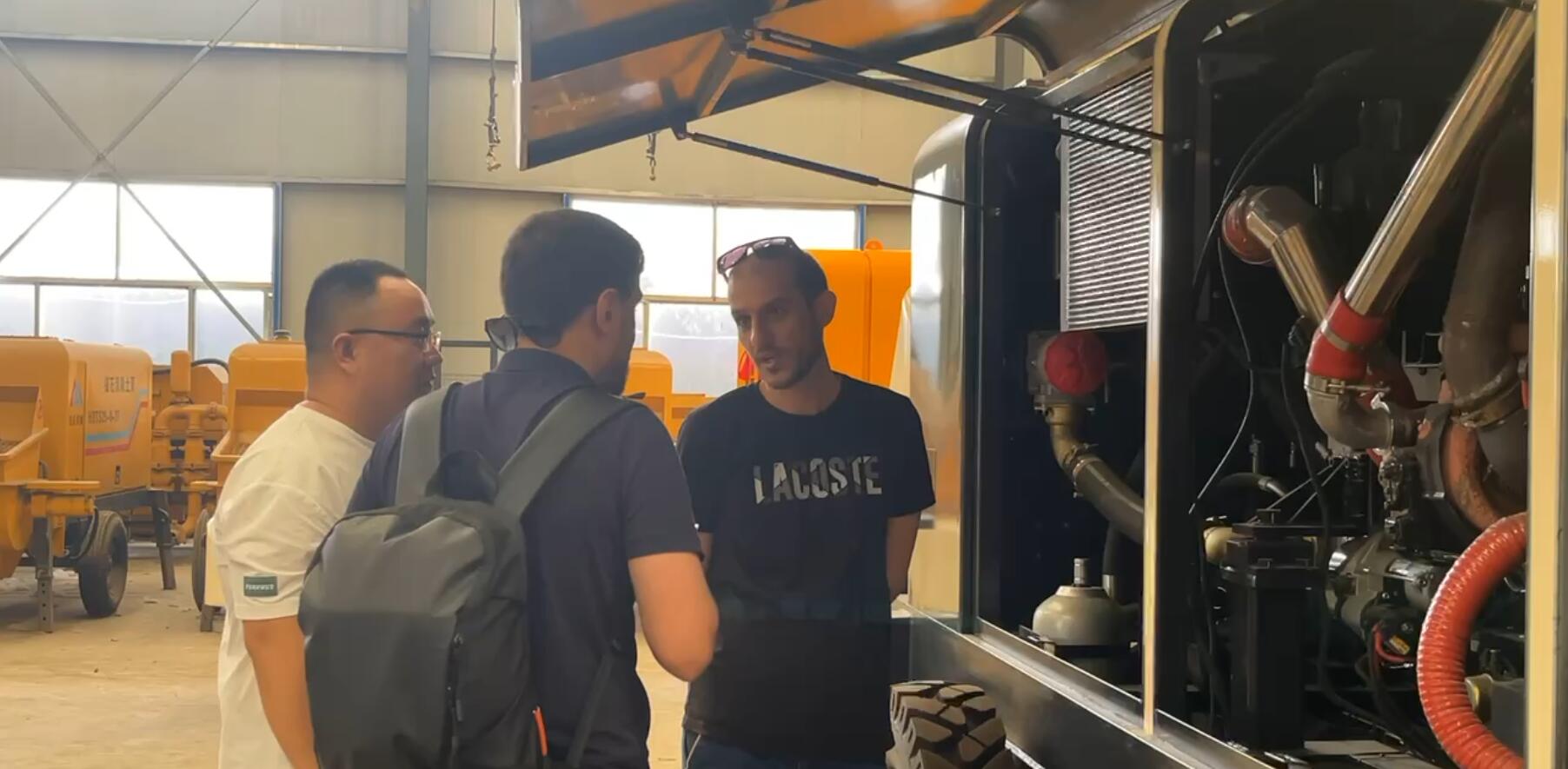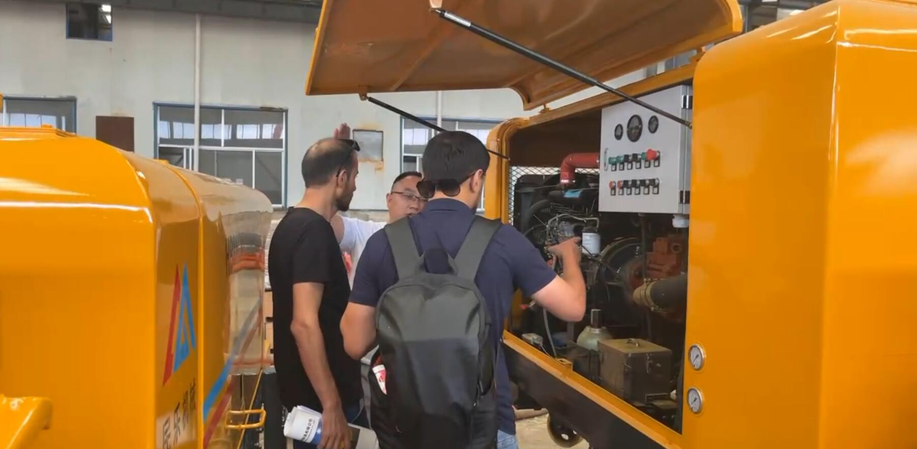 俄罗斯客户来到民乐机械,主要是想了解一下柴油机混凝土输送泵的生产工艺以及生产规模,他们先后来到了我们的生产车间,组装车间以及成品展示区进行实地考察,我们民乐机械生产的柴油机混凝土输送泵采用的是进口的卡特底盘,德国力士乐的液压系统,还有日本川崎的油缸,这些都代表着世界前茅的水平,而且这款设备特别适合农村建房,隧道施工,桥梁建设等各种复杂环境下的作业。它的性能非常可靠,质量也是杠杠滴,目前我们的设备已经远销亚洲,俄罗斯,中东等多个国家和地区,今天通过这次实地考察,俄罗斯的客户对我们的产品更加认可了,当场就签下了采购合同,如果您也有需求,欢迎随时来电咨询。